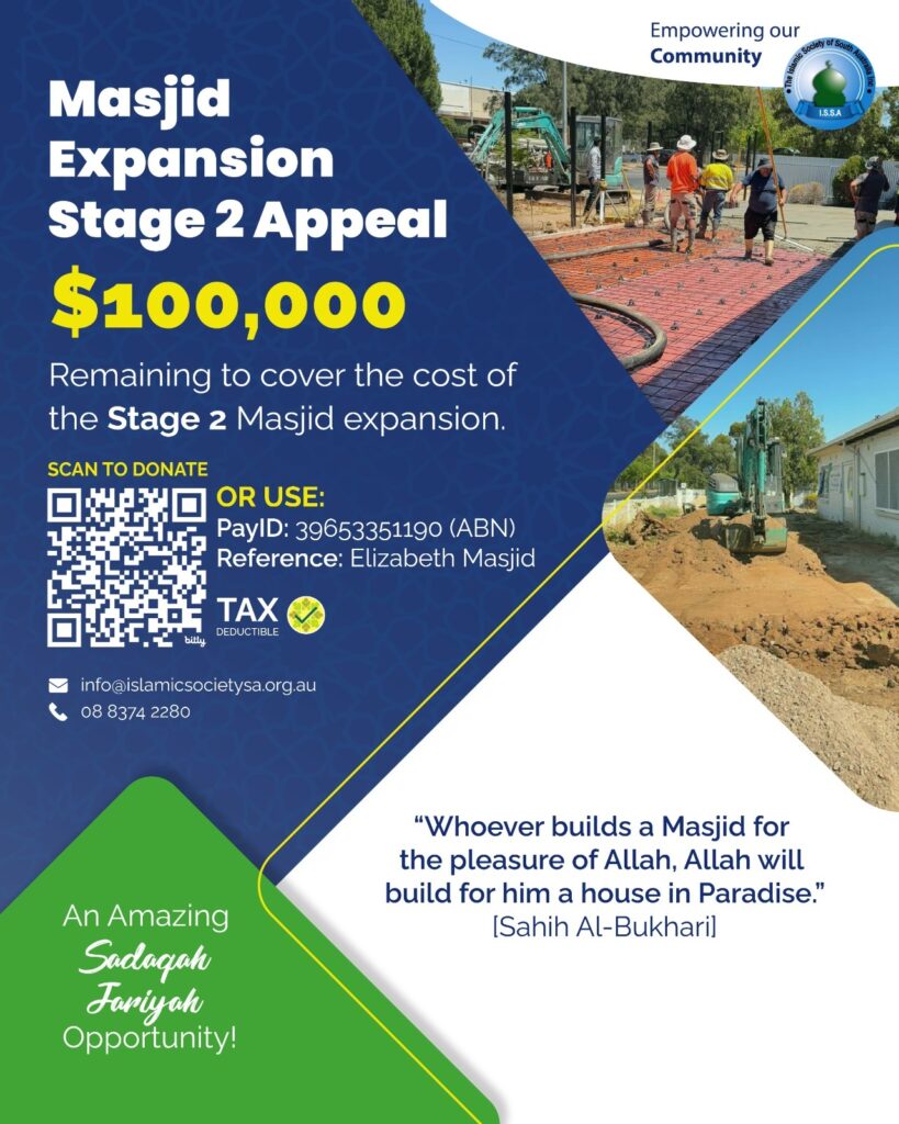 To donate for a mosque and its facilities is an act of Sadaqa Jariya. Donate now to help with the extension plan of Marion Mosque.