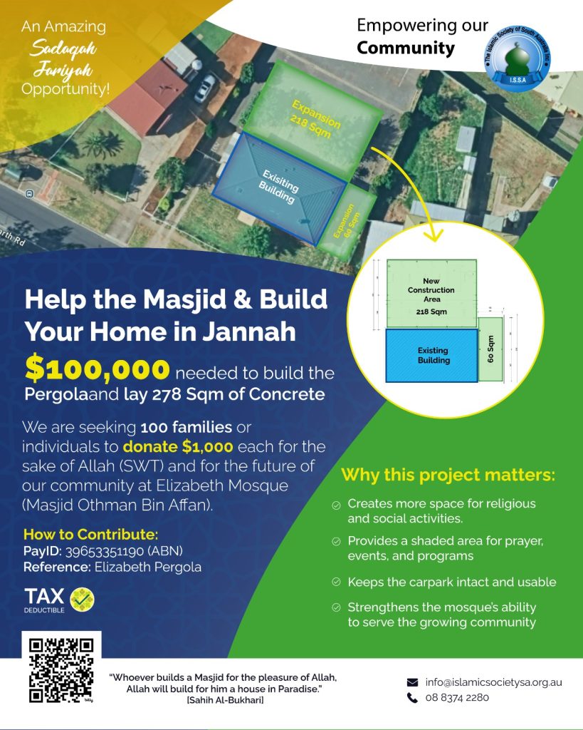 This is an amazing Sadaqah Jariyah opportunity, every prayer and activity in this new space will bring ongoing rewards, InshaAllah.