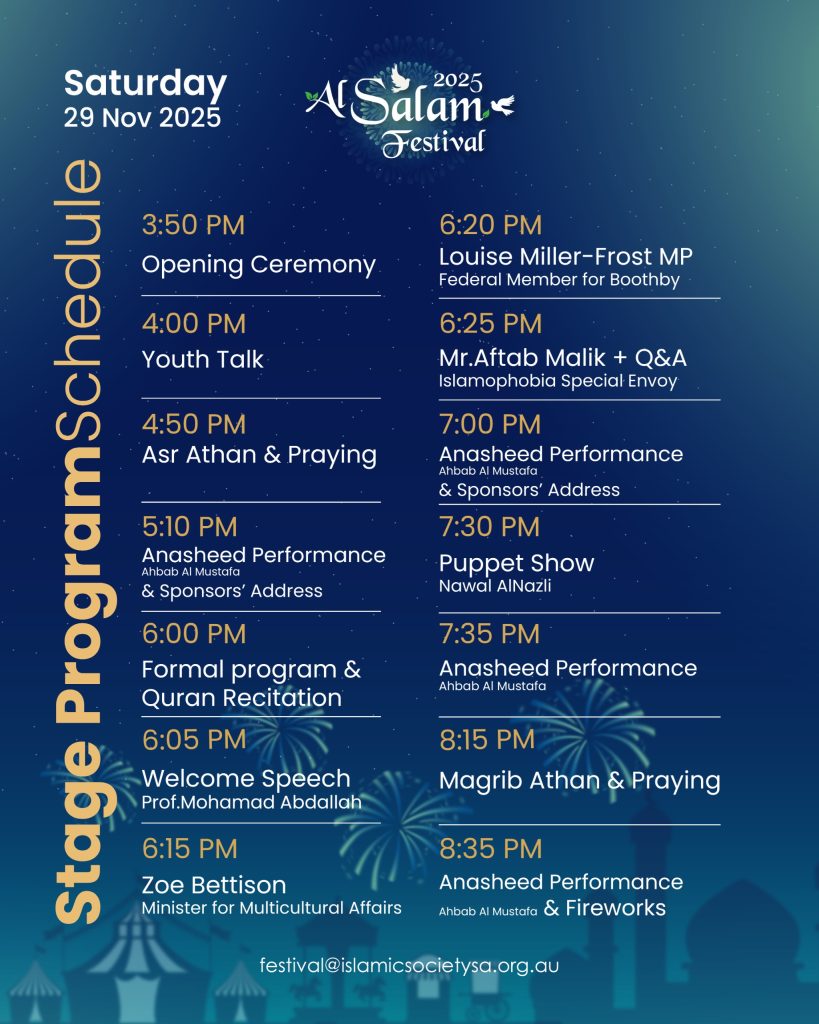 As we approach the Al Salam Festival, I kindly ask everyone to help us achieve one of the main goals of this event: building bridges with the wider Australian community.